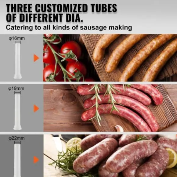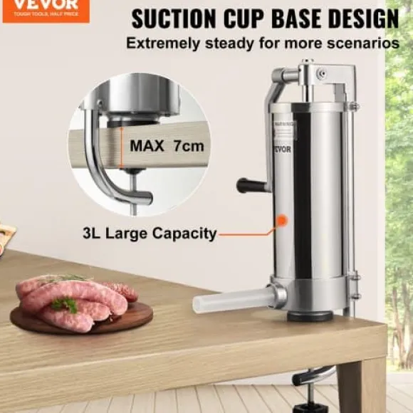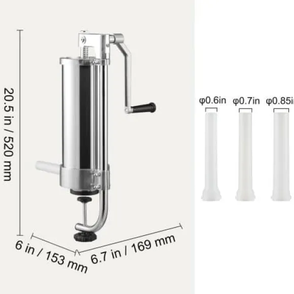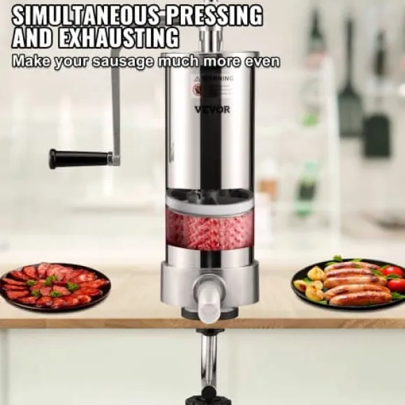 Denna vertikala korvstoppare är utformad för både hushålls- och kommersiellt bruk, vilket gör det enkelt att tillaga olika sorters korv med minimal ansträngning. Tillverkad av livsmedelsklassat rostfritt stål, har den en manuell vev, sugfot för stabilitet och levereras med flera stoppningsrör för olika korvstorlekar. Den lättstädade designen och luftventilen säkerställer effektiv användning och utsökta resultat varje gång.