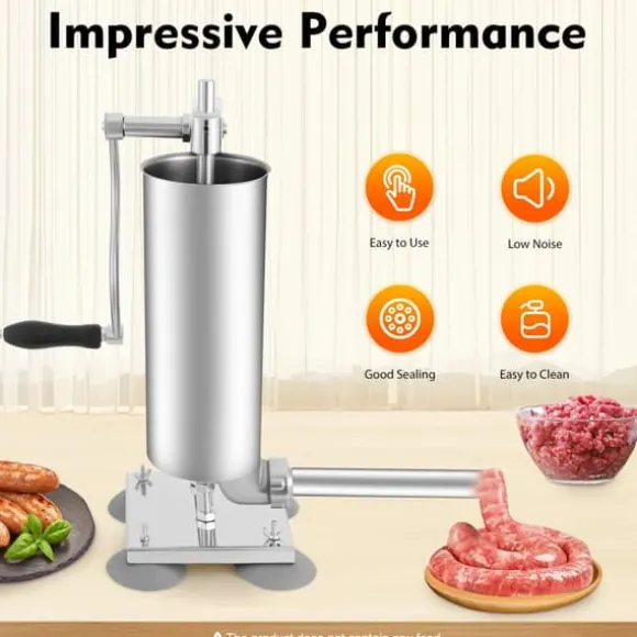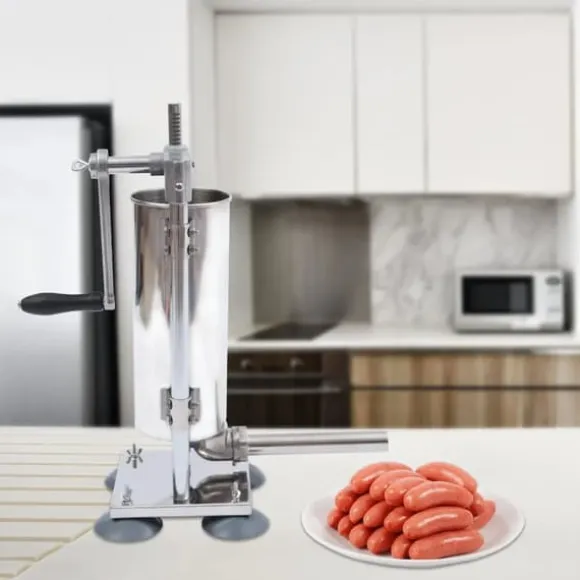 Skapa dina egna, fräscha och hälsosamma korvar hemma. Denna manuella korvstoppare i rostfritt stål kombinerar hög kapacitet (3 liter) med exakt handvevsstyrning för jämn fyllning – perfekt för allt från smala frukostkorvar till grövre varianter.
