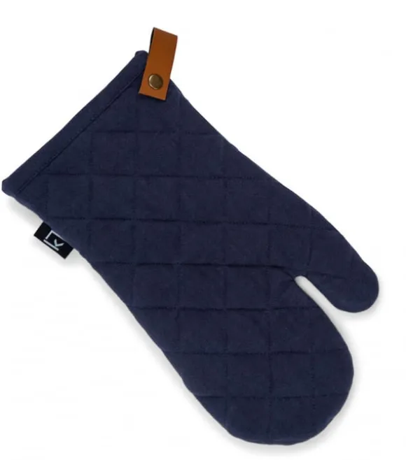 Grillhandsken från Kosta Linnewäfveri är tillverkad i ren bomull. Den quiltade handsken skyddar handen vid matlagning eller bakning. Innehåller en snygg detalj i PU-läder för upphängning.