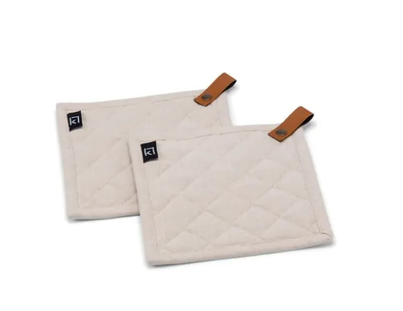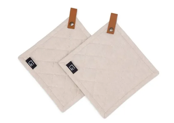 Grytlappar i 2-pack med ögla, producerad i ren bomull. Grytlapparna är quiltade, vadderade och har en snygg detalj i PU-läder.