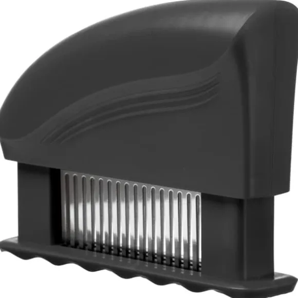Producentkode: 843499 Hendi Profi Line kødmørneren er perfekt til marinering, tilberedning, stegning eller grillning af kød. Det er en moderne og mest effektiv teknologi til at forfine, blødgøre og forbedre kvalitet og smag. Den kombinerer skæring af fibrene og skånsom brud, og under stødet introducerer knivene krydderier og saucer dybt ind i kødet. Maskinen har 51 klinger lavet af 18/8 rustfrit stål. Den tåler opvaskemaskine. Produktegenskaber: – Ergonomisk form tilpasset hånden, – Moderne teknologi til blødgøring og raffinering af kød, – 51 knive – dyb skæring af fibre, – Bølger – delikat knække af kød, – Hurtigere marinering, tilberedning, stegning og grillning, – Introducerer krydderier og saucer dybt ind i skindet, – Bløde fjedre, – Nem at bruge. Tekniske data: – Produktnummer – 843499 – Artikeltilstand – Ny – Materiale – ABS / 18/8 rustfrit stål – Farve – Sort – Antal knive – 51 – Dimensioner – 42 x 150 x 118 mm Sættet indeholder: – Profi kødmørningslinje – Hendi 843499.