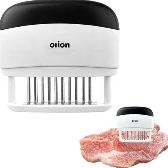 En köttpiercer som är extremt användbar i köket. Den gör att du enkelt kan pierca köttbitar. Att pierca köttet gör det lättare för marinaden att nå det, och under stekningen blir köttet saftigare. Lätt att använda och bekväm att använda tack vare den lämpliga formen som säkerställer ett stabilt grepp i handen. En originalprodukt från det tjeckiska märket Orion. Tillverkad enligt europeiska standarder.