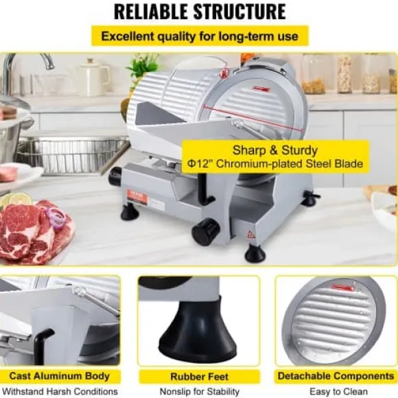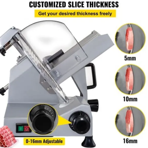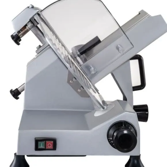 Denna kommersiella elektriska köttskärare är utformad för effektiv och precis skivning av kött, ost, grönsaker och skinka, vilket gör den idealisk för delikatesser, restauranger och hemmakök. Den kraftfulla motorn och justerbara tjockleksinställningar gör att du kan anpassa skivorna efter önskemål, medan livsmedelsgodkända material och avtagbara delar säkerställer enkel rengöring och säker användning.