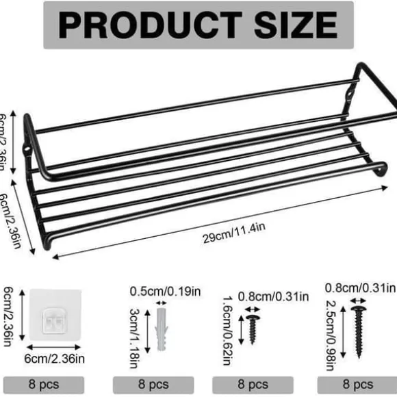 Organisera ditt kök med denna svarta metal kryddhylla, hållbar och elegant. Detta set med 4 kryddställ är enkelt att installera, vilket ger flexibilitet och stil. Mått: 6.0 x 29 x 6.0 cm. Perfekt för optimal förvaring, den passar alla typer av inredning.