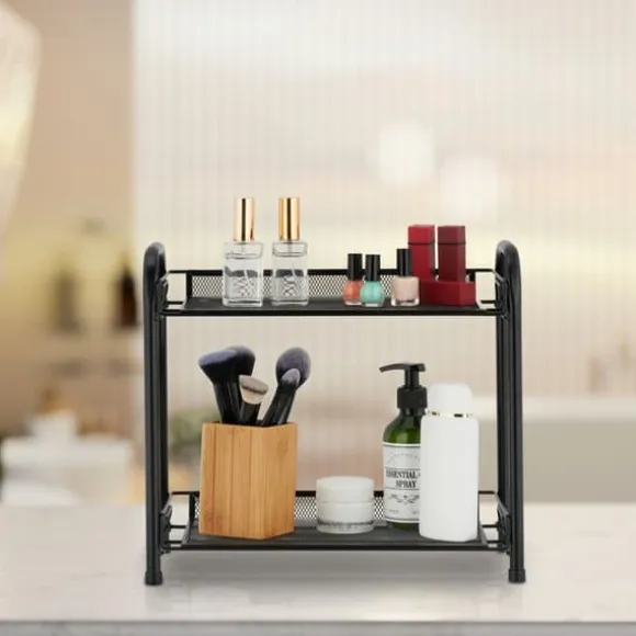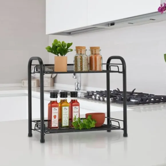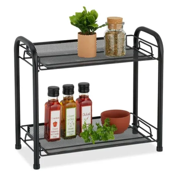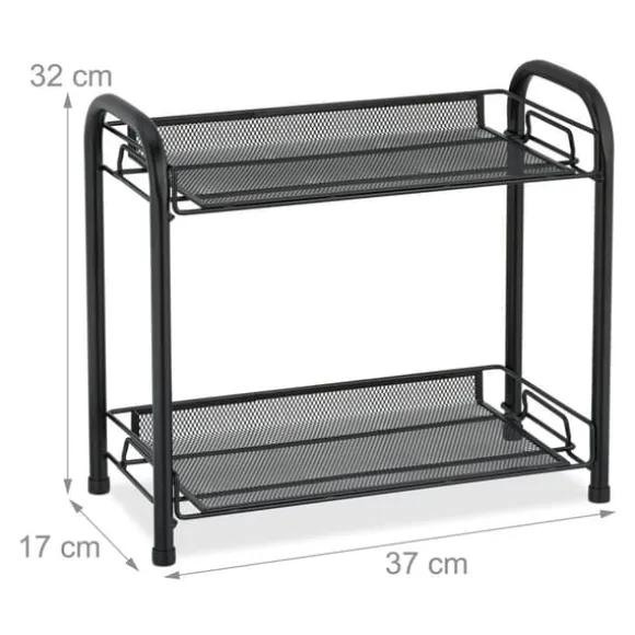 Detta mångsidiga kryddställ i metall är perfekt för att organisera kryddor i köket, kontorsmaterial på skrivbordet eller toalettartiklar i badrummet. Den moderna nätdesignen och den robusta stålkonstruktionen garanterar hållbarhet och ett samtida utseende, medan den kompakta, fristående formen möjliggör snabb montering och flexibel placering.