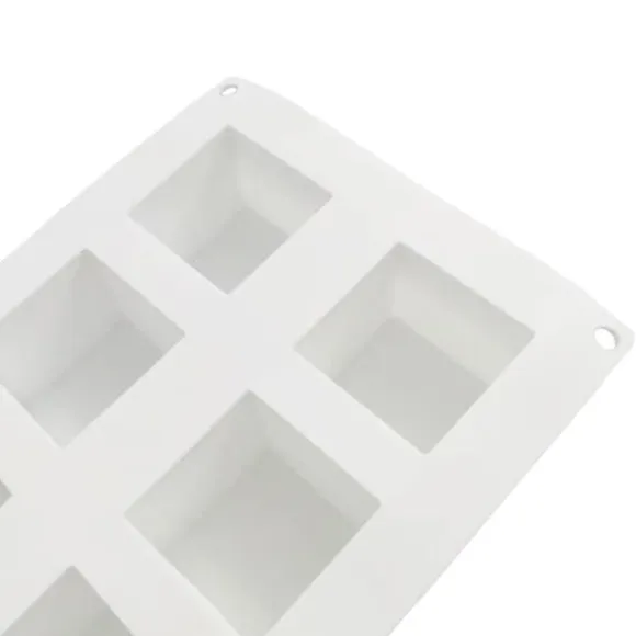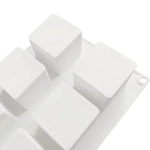 Med denna silikonform kan du göra sex stycken fyrkantiga mousse eller kakor.