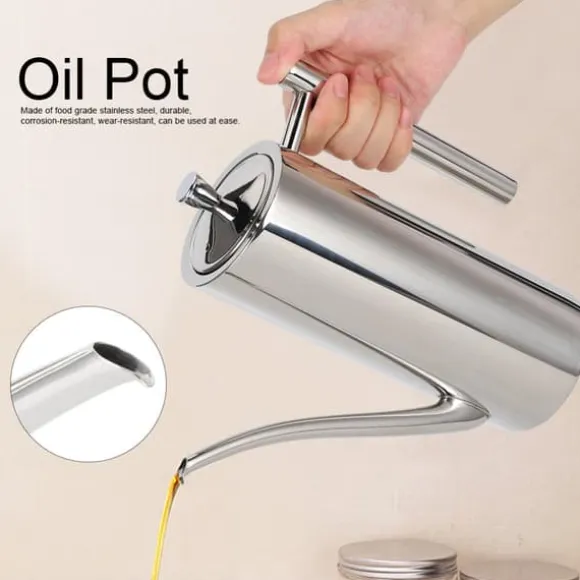 Vi introducerar vår oljekruka i rostfritt stål, gjord av rostfritt stål av livsmedelskvalitet, vilket säkerställer hållbarhet, korrosionsbeständighet och slitstyrka. Du kan använda den med sinnesfrid.