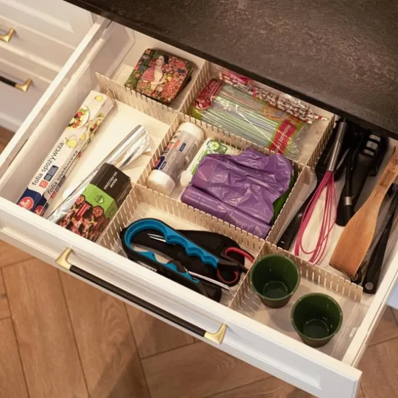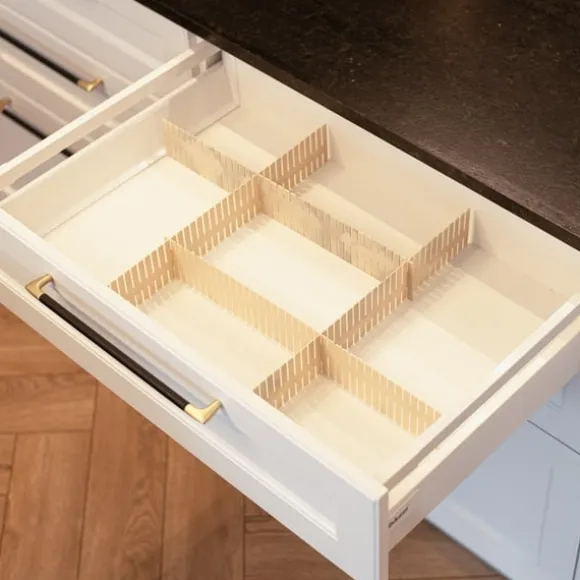 En lådavdelare är ett enkelt men effektivt sätt att skapa struktur i kök, badrum, sovrum eller kontor. Med hjälp av de fyra delarna kan du själv anpassa avskiljningarna efter behov, vilket gör att småsaker inte blandas ihop eller rör sig runt i lådan. Tack vare den flexibla designen fungerar avdelaren även utanför lådor, till exempel på skrivbord eller sminkbord, för att skapa en mer organiserad yta.