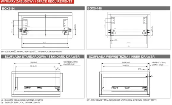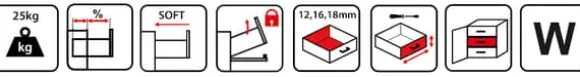 Lådan SIMPLE BOX är tillverkad av högkvalitativa material, vilket gör att den arbetar tyst och smidigt. Dess lastkapacitet (25 kg) möjliggör stressfri förvaring av alla möjliga saker. ULTRATUNN LÅDSIDA, ENDAST 1,5 mm!Lådan har mjukstängning och ett lås mot öppning. Finns i två höjder och två längder.Grundläggande funktioner:mjukstängningdelvis utdragbarhetfull vertikal och horisontell justeringlastkapacitet upp till 25 kglåsning mot upplåsningmaterial: stålsidoväggtjocklek 1,5 mm