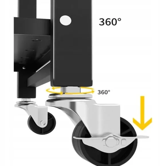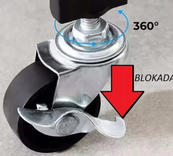 Hyllan har 4 hjul som roterar 360 grader, och dessutom har 2 av dem en speciell låsmekanism som förhindrar att hyllan rör sig av sig själv.
