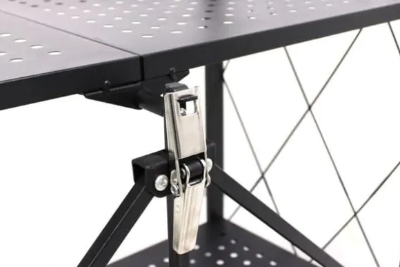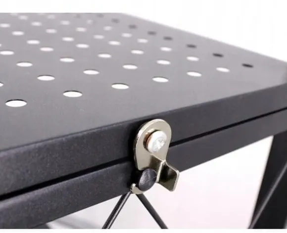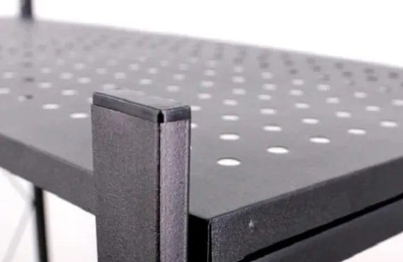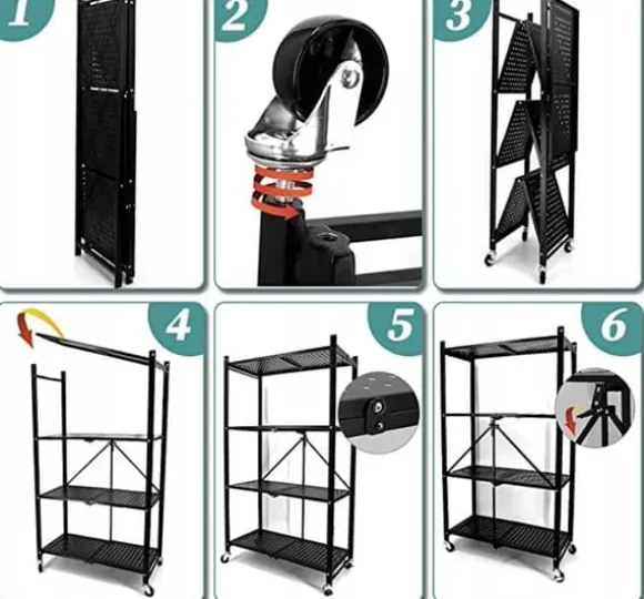 Den har 4 hjul, varav 2 har ett speciallås Snygg finish med hål på hyllorna