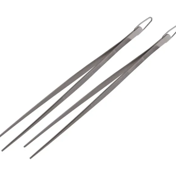 Pincetten är gjord av rostfritt stål.