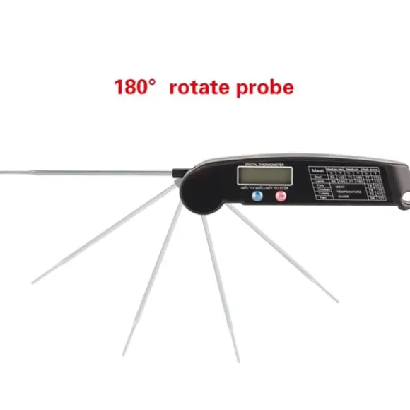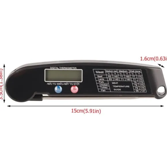 Välkommen till vår butik! Denna digitala mattermometer är tillverkad av premium ABS och rostfritt stål, vilket garanterar hållbarhet och säkerhet. Den har en stor LCD-skärm för tydlig och enkel avläsning, med exakta temperaturmätningsfunktioner. Enheten kan växlas mellan ℃ och ℉ med hjälp av tryckknappen på baksidan. Den är designad för en mängd olika livsmedel och kött och mäter temperaturer från -50 ℃ till 300 ℃ (-58 °F till 572 °F). Den hopfällbara mattermometern, strömknappen och hållknappen gör den användarvänlig och ger avläsningar på bara 4 till 8 sekunder. Hold-funktionen lagrar temperaturdata när sonden tas bort, och enheten stängs automatiskt av efter 10 minuters inaktivitet. Den inkluderar en magnet för enkel fastsättning på släta metallytor eller krokar. Paketet innehåller en digital mattermometer med en hopfällbar sond (batteri ingår ej). Produktens mått är 15 x 3,5 x 1,6 cm (5,91 x 1,38 x 0,63 tum), med en sondlängd på cirka 11,2 cm (4,41 tum) och en vikt på cirka 63 gram. Nöjdhet: Våra kunder är vår högsta prioritet. Om du upptäcker några produktproblem efter att du mottagit varorna, såsom skador eller felaktig mängd varor, vänligen kontakta säljaren omedelbart. Vi gör vårt bästa för att ge dig tillfredsställande kundservice.