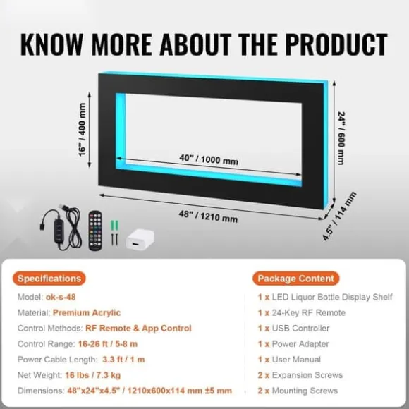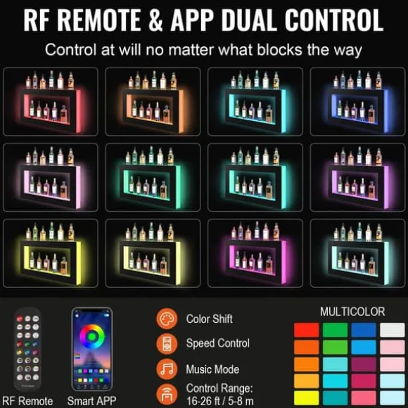 Är du trött på förvirrande inställningar och justeringar? Med våra barljus har du kontroll! Med stöd av RF-fjärrkontroll och smart appkontroll kan du justera effekter som du vill, inklusive 7 statiska färger, 22 dynamiska färger, flera gör-det-själv-lägen, musiklägen och 1-4 timmars timing. Dessutom kan flera barhyllor styras samtidigt med en enda fjärrkontroll.