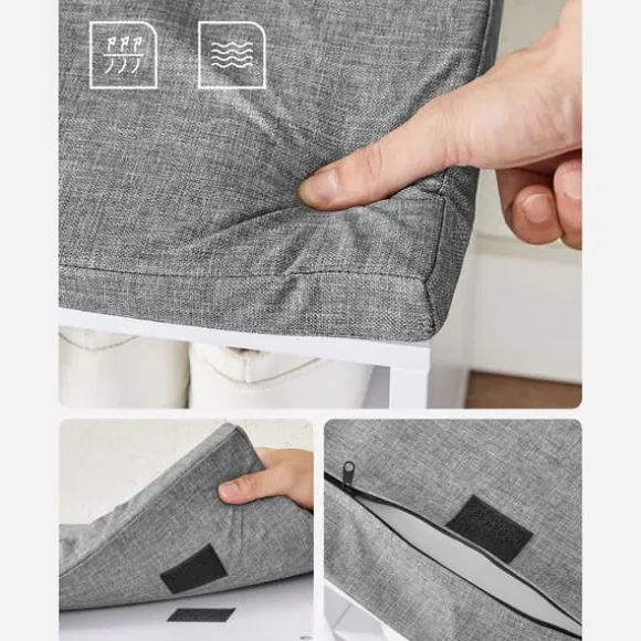 Produktinformation: – Färg: vitgrå – Material: spånskiva, skum – Storlek: 105 x 30 x 48 cm (L x B x H) – Vikt: 19,5 kg – Max. statisk belastningskapacitet: 200 kg Leveransomfattning: – 1 x skobänk – 1 x tillbehörspaket – 1 x bruksanvisningVASAGLE Noteringar:- Av säkerhetsskäl får barn inte klättra på eller leka med produkten.- Skobänkens maximala statiska belastningskapacitet är 200 kg. Vänligen överskrid inte denna maxvikt.