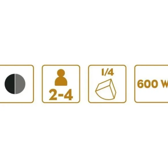 Specialfunktioner: Raclette – Kapacitet: 2 till 4 personer – Maximal temperatur: Justerbar termostat för perfekt värmereglering – Inkluderade tillbehör: 1 stor spatel – Eleffekt: 600 W – Antal personer: 2 till 4