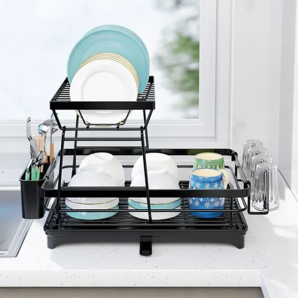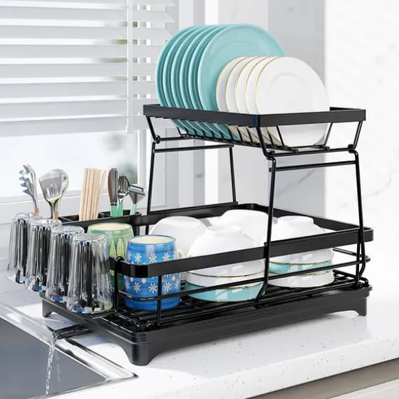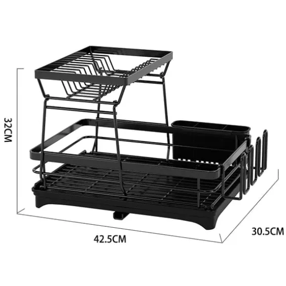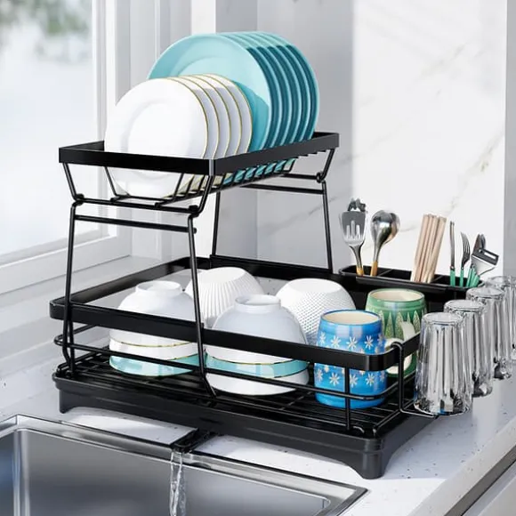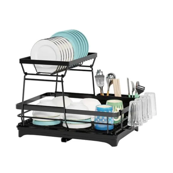 LIVIT Dual-Tier Black Dish Rack är ett elegant och mycket funktionellt kökstillbehör utformat för att förenkla din diskning. Dess moderna, platsbesparande design erbjuder en organiserad lösning för att torka och förvara tallrikar, koppar och bestick.