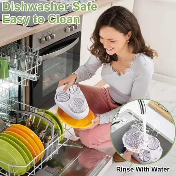 Snabb och enkel rengöring: Skölj direkt under vatten eller placera i diskmaskin – ingen borstning behövs. Hållbar ABS-plast och rostfria stålblad är resistenta mot fläckar och lukt, vilket gör rengöring lika lätt som skärning.