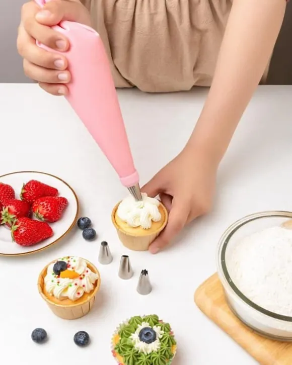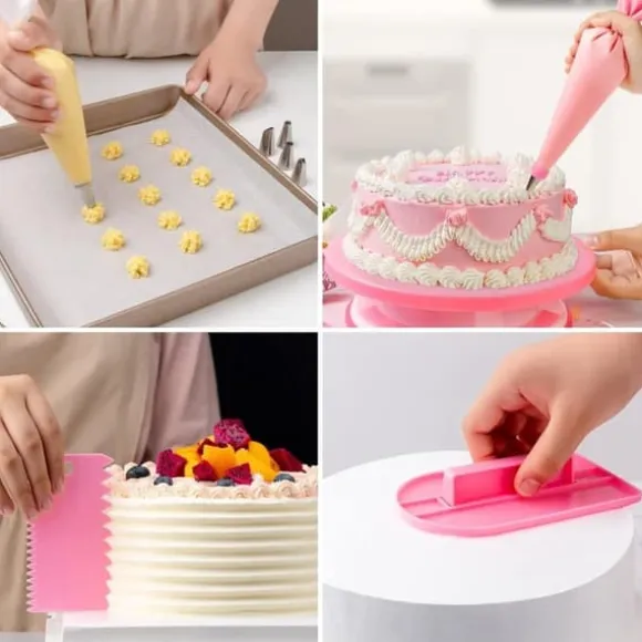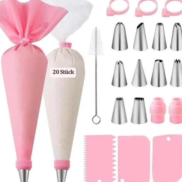 Inkluderar munstycken för olika mönster, spatlar för jämn glasyr och engångspåsar för enkelhet. Perfekt för tårtor, kakor, cupcakes och andra desserter.