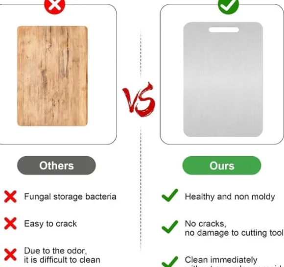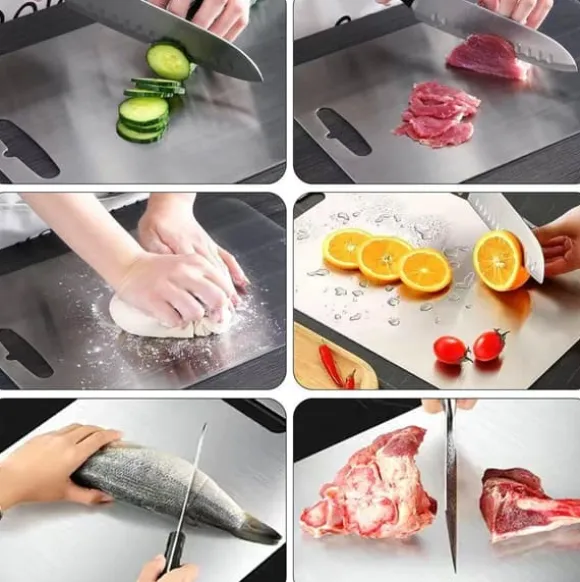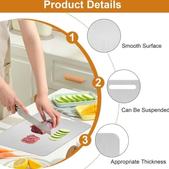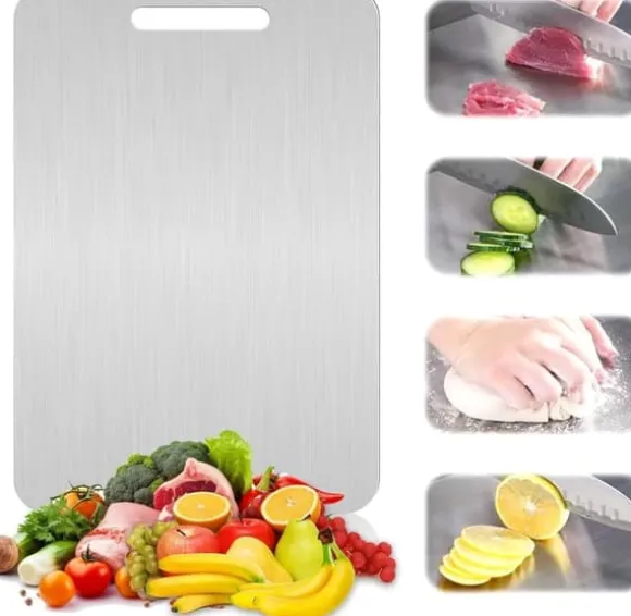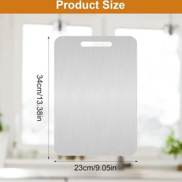 Ge din matlagning en professionell touch med denna dubbelsidiga skärbräda i rostfritt stål och titanlegering! Perfekt för både hemmakockar och proffs, denna robusta och hygieniska bräda är designad för att klara alla köksuppgifter med stil och effektivitet.