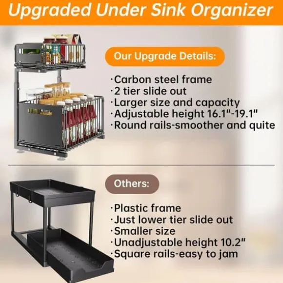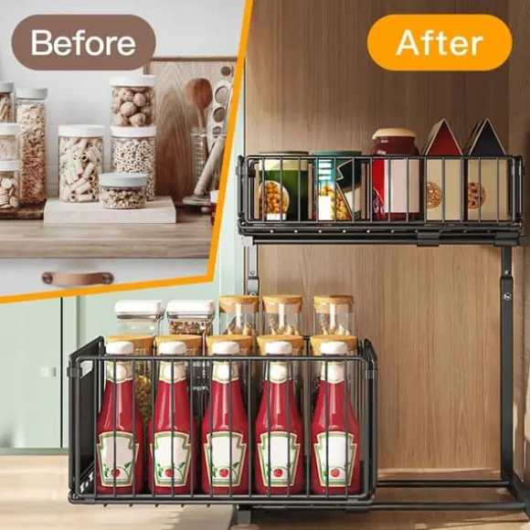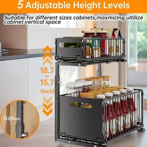 Inte bara för kökets underskåp – hyllan passar även i badrum, tvättstuga, kontor, sovrum eller vardagsrum. Förvara rengöringsartiklar, hygienprodukter, böcker, snacks eller andra vardagsföremål