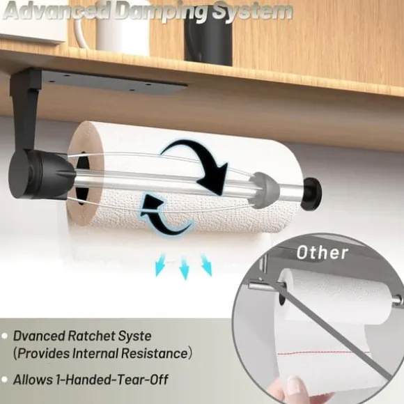 ☞ Speciell dämpningsdesign: Den förbättrade hushållspappershållaren har ett speciellt spärrsystem och kan göra det bekvämt att riva pappershanddukar med en hand.