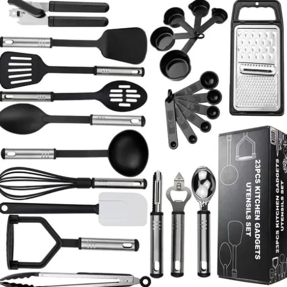 Det 25-delade setet innehåller silar, finmaskiga sil, djupa soppskedar, långskaftade slevar, äggpenslar, vispar, kökstång med mera, vilket täcker familjens dagliga matlagnings- och bakningsbehov.