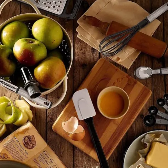 Alla köksredskap är maskindiskbara och enkla att rengöra snabbt. Silikonhuvudet absorberar inte fett och är lätt att hålla rent efter användning, vilket håller dem som nya. Upphängningsöglan på handtagen sparar plats vid förvaring.