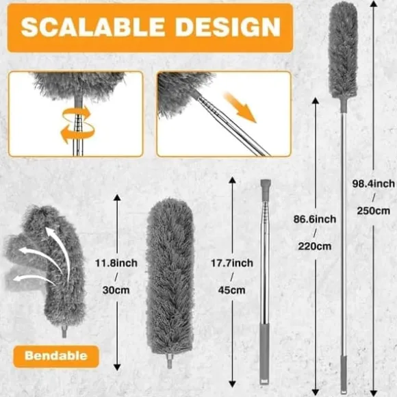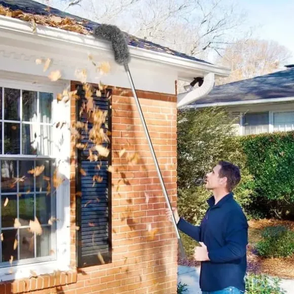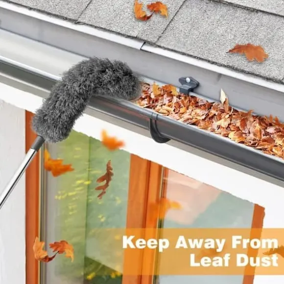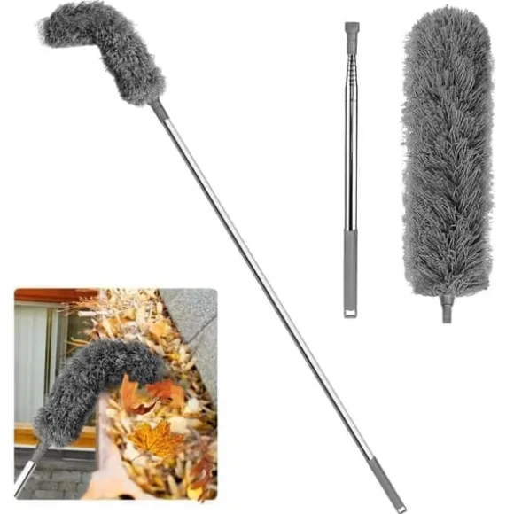 Multifunktionell böjbar teleskopisk långskaftad dammvippa – 2-i-1 verktyg för dammning och rensning av rännor