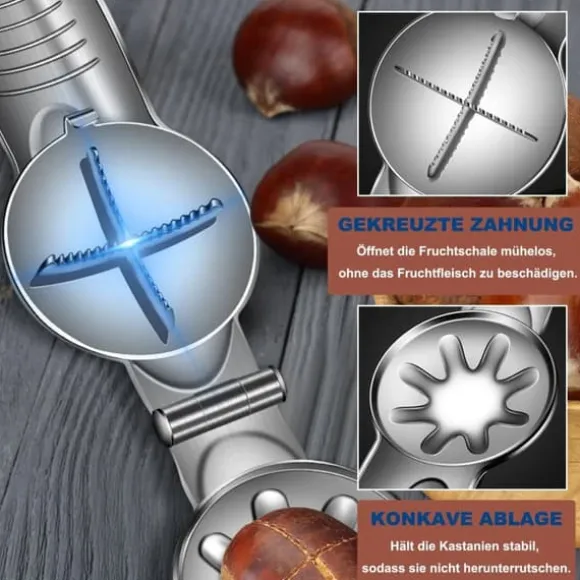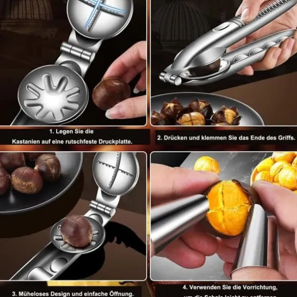Oavsett om det är för hemmabruk eller professionellt kök är denna kastanjöppnare ett utmärkt val. Lämplig för alla åldrar och ett praktiskt verktyg för att spara tid och njuta av goda kastanjer enkelt.