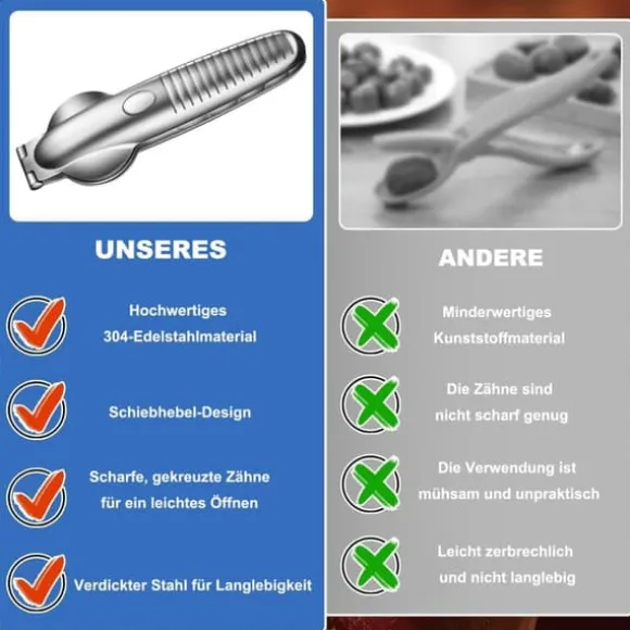 Hävstångsdesignen ökar effektiviteten, vilket gör det lätt för både nybörjare och barn att använda. Sparar tid vid kastanjskalning och gör köksarbetet smidigare.