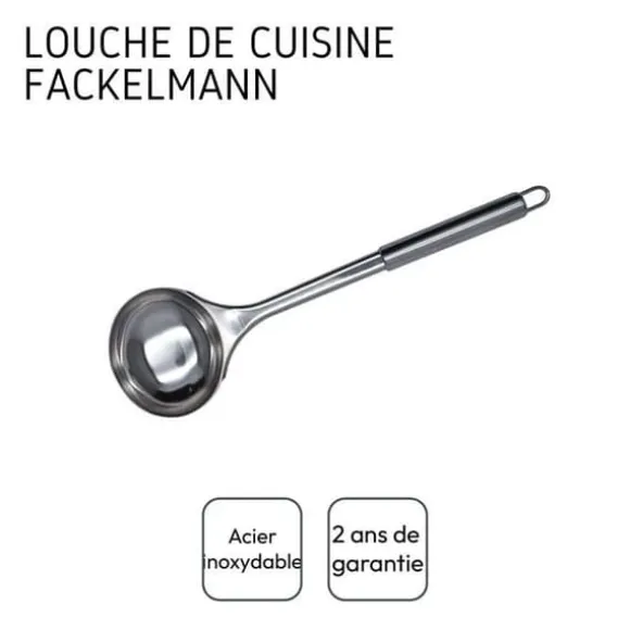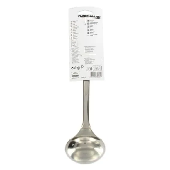 BESKRIVNING : Fackelmann erbjuder denna slev i rostfritt stål från kollektionen Elemental; denna slev är idealisk för att servera dina soppor men kan även användas för pannkakssmet, köttsås, till och med för att servera semlor. DET LILLA + : Det runda handtaget säkerställer ett behagligt och funktionellt grepp och kroken i slutet av handtaget ger dig möjlighet att hänga upp sleven eller fästa den i ditt kök så att du enkelt hittar den. MATERIAL : Rostfritt stål. DIMENSIONER : 32,5 x 9,1 x 1,6 cm. INNEHÅLL : 1 slev för soppor i rostfritt stål. Fackelmanns köksslev i rostfritt stål är mycket praktisk för att servera dina såser, soppor, puréer och olika rätter som småpasta, ris, semla. Denna slev i rostfritt stål är därför perfekt för att servera flytande rätter men också för att transportera pannkakssmet i pannkakslagg, likaså för våffelsmet eller pannkakssmet. Fackelmann France är ett företag som är specialiserat på distribution av köks- och bakredskap samt bakformar och ugnsplåtar. Företaget försöker skapa en viss lätthet i alla sätt att laga mat genom sina smarta verktyg. Fackelmanns köksredskap i Frankrike erbjuds till alla typer av kockar för enkel och daglig användning. Vispar, spatlar, slevar, skalar, skärbrädor och många andra verktyg är tillgängliga för att förbereda läckra recept som alltid är mer original.