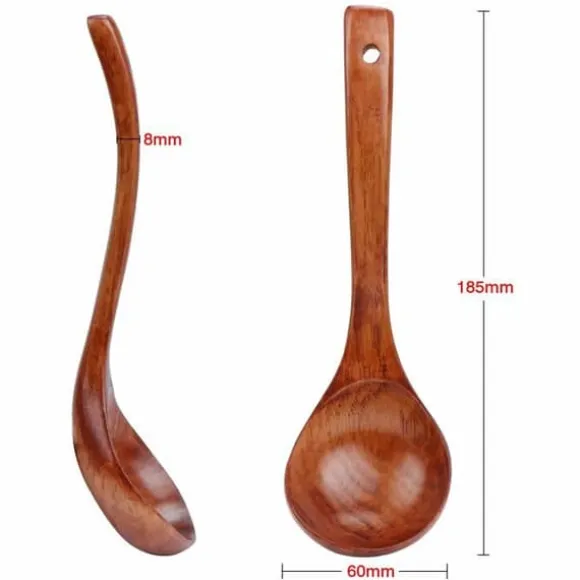 Produktbeskrivning: Detta är en högkvalitativ soppslev. Tål handtvätt och lufttorkning. De kommer att hålla en livstid om de sköts på rätt sätt. Perfekt för köket, tvättbar och lätt att hantera. Ett absolut måste för ditt lyckliga hem. Perfekt för alla kök. Egenskaper: – Färg: enligt bild. – Material: trä. – Total längd: 18,5 cm. – Huvudets diameter: 6 cm. Innehåll: 2 soppslevar. Tips: Varje soppslev är tillverkad av naturligt trä; de är inte helt identiska med avseende på färg och struktur. Du kan torka av dem flera gånger med en kopp te om du inte gillar lukten av sleven när du får den. Naturlig träsked: denna slev är tillverkad av 100 % naturligt trä, korrosionsbeständig och hållbar. Giftfri och icke-förorenande. Slev med delikat struktur: träets struktur är fräsch och elegant, ytan är slät och utsökt, den integrerar en tjock naturlig smak i det hemmiljö. Lång blandningssked: kommersiell kvalitet kan användas i restauranger, livsmedelsbutiker, matsalar etc. Lämplig för att laga gröt, soppa, nudlar och grytor. Praktisk design med hängkrok: kroken i änden av skeden faller inte ner i soppan eller gröten. Den kan hängas upp och är lätt att förvara. Handtag i trä för en säkrare och bekvämare användning, särskilt i soppa eller varmt vatten. Slät yta, lätt att rengöra, oroa dig inte för kvarvarande smuts. Total storlek: 18,5 cm lång; 6 cm i diameter; förpackningsinnehåll.