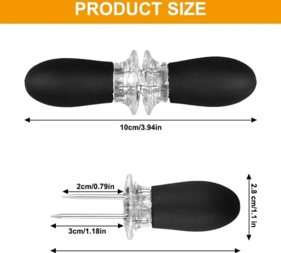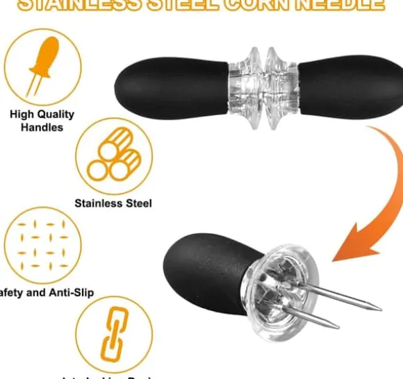 Dessa högkvalitativa kebabspett i rostfritt stål har ergonomiska handtag för ett säkert grepp, vilket skyddar dina händer från brännskador och gör det enkelt att njuta av utsökt majskolv.
