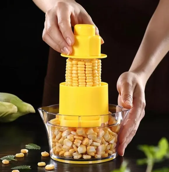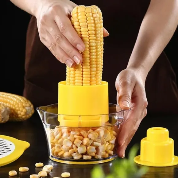 Ett enkelt verktyg för dig som är ute efter ett smidigt och snabbt sätt att skala din majskolv. Den är konstruerad med slitstark plast och ett blad i 18/8 rostfritt stål vilket indikerar på lång livslängd. Till skalaren tillkommer ett handskydd för att skydda dina händer mot bladet vid användning. Förvaringskoppen har en tydlig skala för mätning.