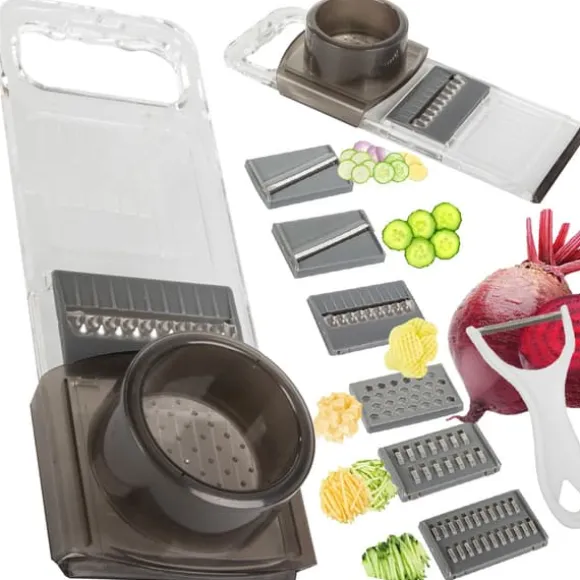 Grönsaksskärare och rivjärn med 6 blad – för frukt, grönsaker, ost och mer