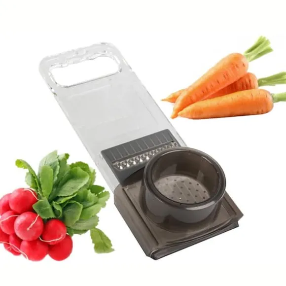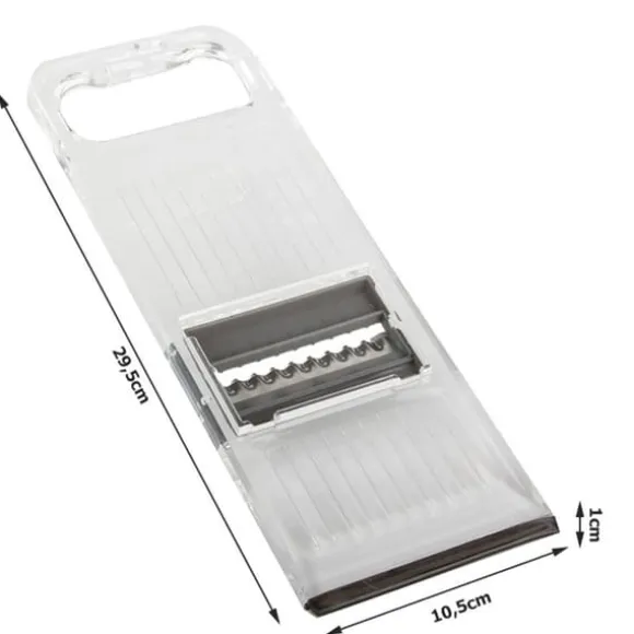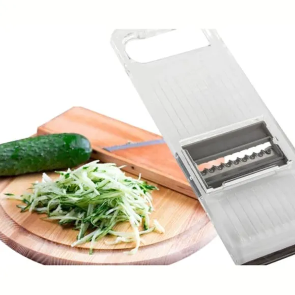 Gör vardagens matlagning enklare med denna smidiga grönsaksskärare! Skiva, strimla eller riv allt från gurka och potatis till ost och ägg på nolltid. Perfekt för sallader, wokrätter eller barnmat – du byter enkelt mellan sex olika blad beroende på vad som ska förberedas. Den halkfria botten och det bekväma handtaget gör att allt går säkert och snabbt, utan kladd. Dessutom är den lätt att rengöra efter användning. Ett måste för dig som vill spara tid i köket och ändå få snygga resultat!