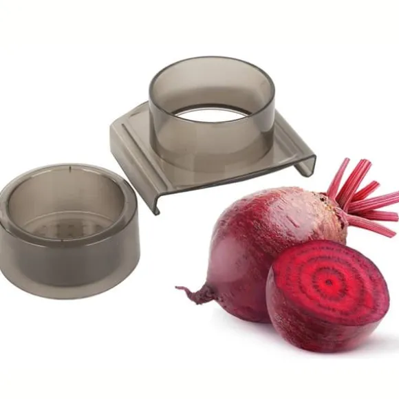 - Sex utbytbara blad: rivjärn (fin), 3 mm strimlor, 5 mm tärningar, tunna skivor (ca 2 mm), tjocka skivor (ca 3 mm), vågiga skivor