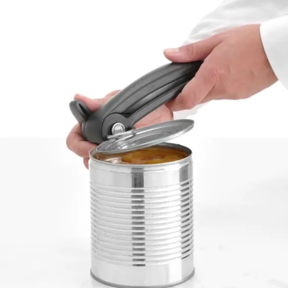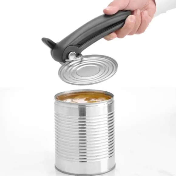 Hendi burk- och konservöppnare har en skärmekanism som skär sidan av burken strax under locket utan att lämna några vassa kanter. Detta gör att locket kan sättas tillbakapåburken. Bladet är gjord avrostfritt ståloch handtaget är gjord avpolypropen. Produkten tål diskmaskin.