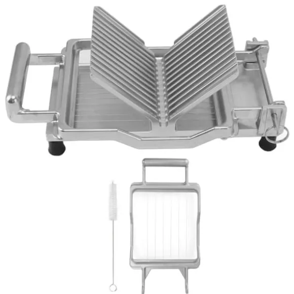 3, EXAKTA LINJER: Denna manuella skärmaskin har tydliga och exakta rutnätsskalalinjer, som gör att du kan skära efter storlek och ge enhetliga ost- eller brödskivor.