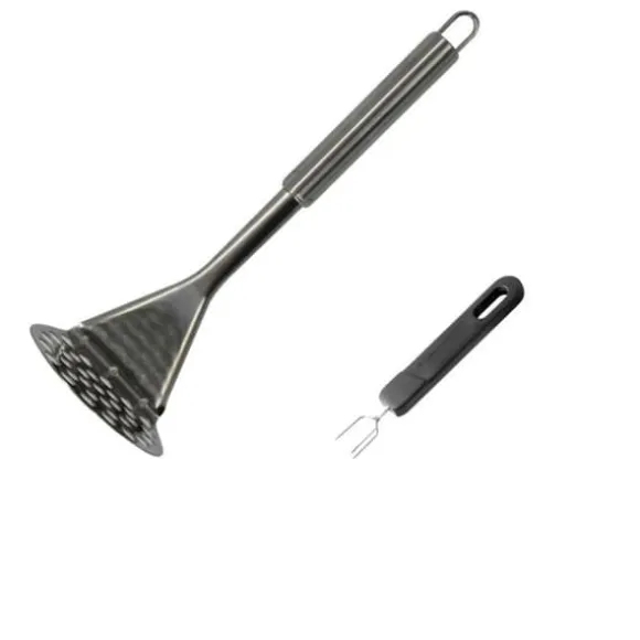 BESKRIVNING: Fackelmann rekommenderar denna praktiska duo med en manuell potatispress och en gaffel med tre tänder, för att förbereda en krämig potatisstomp, läckra hemmagjorda grönsaksmos och puréer för bebisar.