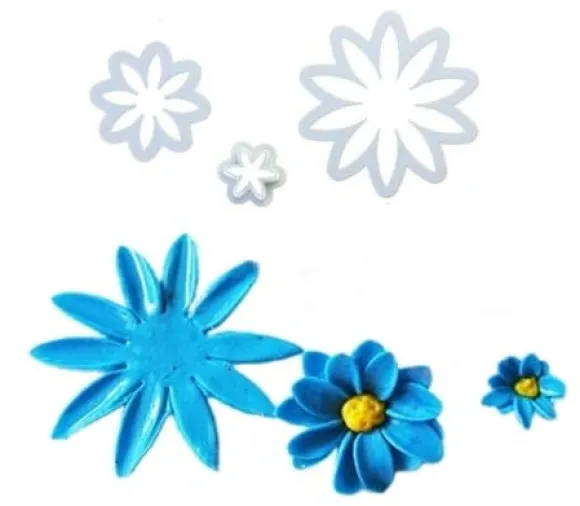 En uppsättning med tre utstickare för att göra blommor av sockerpasta;