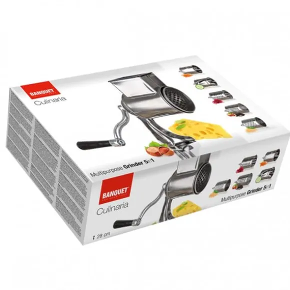 Manuell maskin för att mala torkad frukt, riva potatis, choklad och ost samt hacka grönsaker – Tillverkad i vitemaljerat rostfritt stål – Har 5 utbytbara trumskärskivor för olika typer av produkter – Anpassad för att mala olika sorters spannmål, nötter, choklad, grönsaker och frukt – Praktisk infästning i bänkskivan förhindrar rörelse – Enkel montering och demontering underlättar rengöringen – Maskinen utmärker sig genom sin enkla form, släta yta och praktiska design – Kan användas i hem, matsalar eller barer Detaljer: – Produkt tillverkad av hög -kvalitets rostfritt stål. – Tanken fästs på bordet eller bänkskivan med en skruv. – Setet innehåller fem skär som tillåter olika rivnings- och rivningstjocklekar beroende på dina behov. – Produkten är väldigt lätt att installera, rengöra och underhålla. – Att gnugga tar bara ett ögonblick, vilket sparar tid. – Det är nödvändigt när man river nötter, frukt eller grönsaker. – Originalprodukt från det tjeckiska märket Banquet.