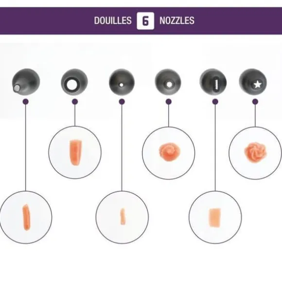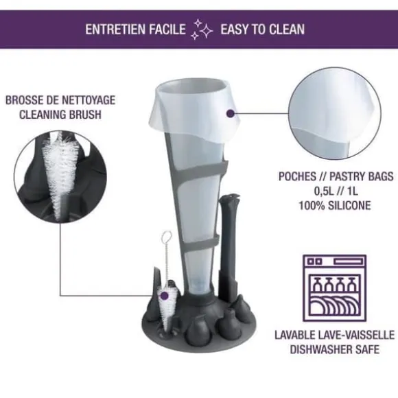Pipset – Svart – För att göra makroner, dekorera cupcakes och fylla puffar – Innehåller: 1 500 ml spritspåse, 1 1 L spritspåse, 1 hållare, 6 munstycken, 1 tång och 1 flaskborstrengöring – Hållaren låter dig fylla spritspåse och håll alla delar av setet inom bekvämt räckhåll.