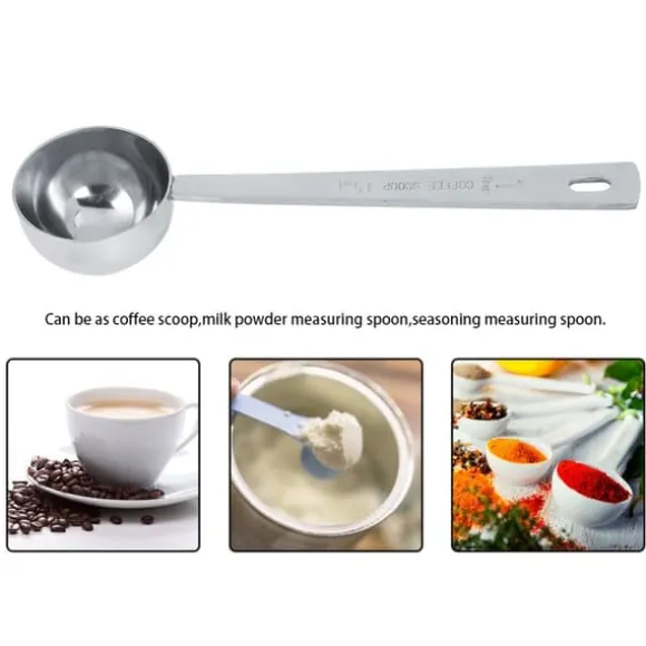 Vi presenterar vår mätskopa i rostfritt stål, gjord av hållbara och miljövänliga material. Med sin eleganta design och släta yta är denna skopa perfekt för ditt kaffe-, mjölkpulver- och smaksättningsbehov.