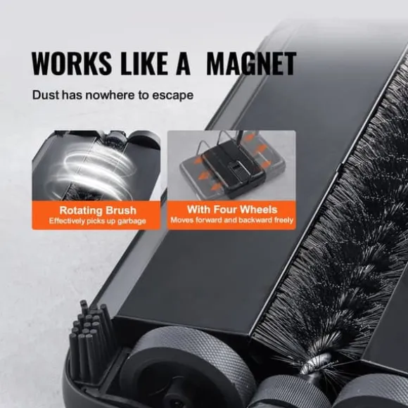 Rengör som en magnet: Den handhållna mattfejaren är utrustad med en borste som fungerar som en magnet och effektivt plockar upp smuts och damm. Tack vare sin fyrhjulskonstruktion rör den sig fritt framåt och bakåt, vilket gör städningen till en barnlek.