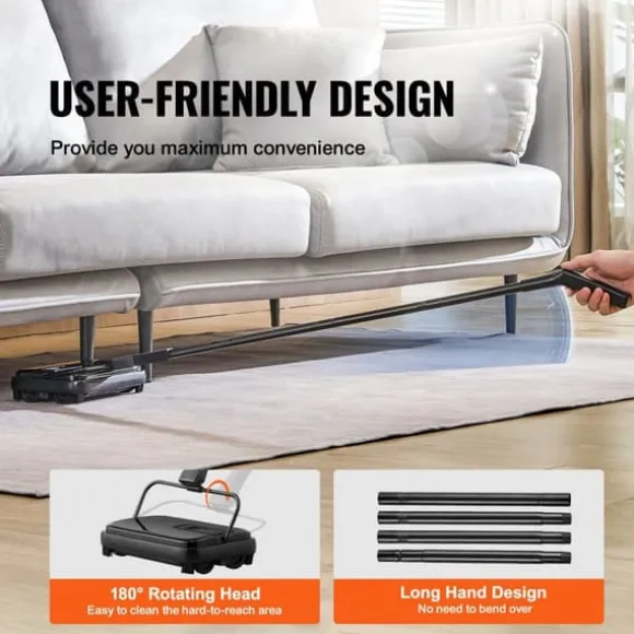 Användarvänlig design: Med sitt 180° vridbara borsthuvud är denna handfejare designad för att enkelt rengöra svåråtkomliga områden under soffbord, soffor och till och med sängar. Tack vare det förlängda handtaget behöver du inte böja dig ner när du städar.