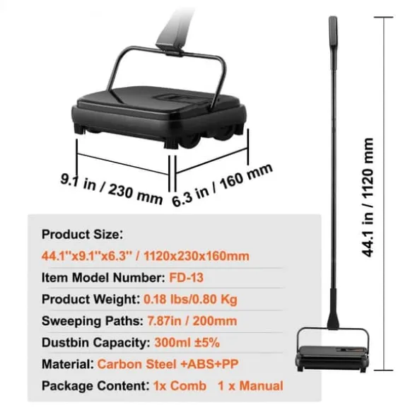 Mångsidig användning: Vår lätta manuella mattfejare glider enkelt över alla ytor och suger upp smuts, smulor, nötter, djurhår och skräp från hårda golv, laminat, kakel, mattor och gångmattor på några sekunder! Städning har aldrig varit enklare.