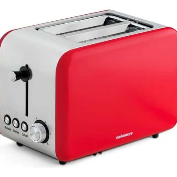 Mellerwares krispiga brödrost har 2 fack på 14×4 cm och en uppvärmnings- och avfrostningsfunktion. Med sina 6 gradinställningar kan du justera intensiteten för att njuta av utsökta rostade smörgåsar som är gjorda just för dig. Dess röda färg och originella design gör den till ett dekorativt inslag i ditt kök.