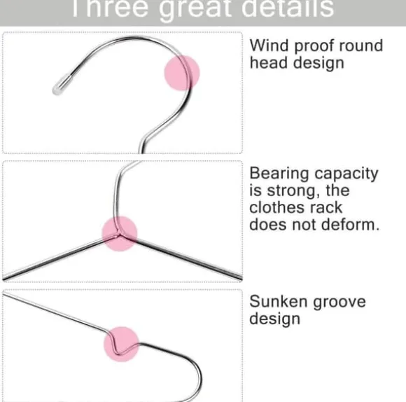 Tillverkade av slitstarkt rostfritt stål skapar dessa galgar ett harmoniskt flöde i din garderob. Galgens förpackningsstorlek: 40 st/förpackning; 16,5 tum, 3 mm tjocklek